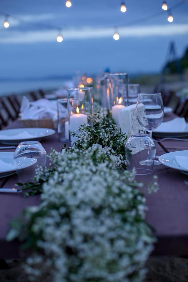 Φωτισμός & Ατμόσφαιρα: Ενσωμάτωση κεριών, φωτιζόμενων γιρλαντών (fairy lights) και φαναριών για τη δημιουργία ζεστής, ρομαντικής ατμόσφαιρας.